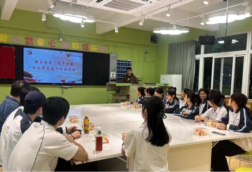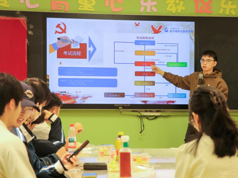 在随后的学业帮扶座谈会上,党支部书记黄金坤详细解读“携手共进・党员护航学业帮扶在行动”活动方案,从帮扶对象筛选标准、党员职责分工,到每周辅导频次、线上线下辅导结合模式等细节逐一说明;同时针对期末考试流程进行全面梳理,涵盖考前复习重点划定、考试报名流程、考场规则解读以及成绩查询与申诉流程等内容,为学生答疑解惑,助力其做好备考规划。