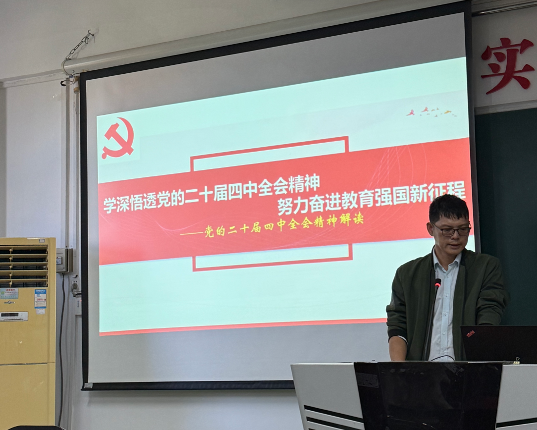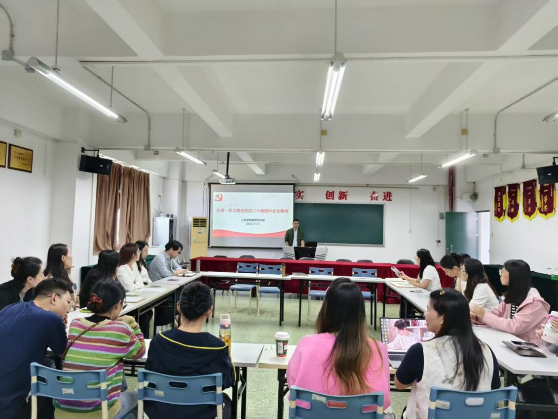 11月6日,我院教师党支部在人文艺术类513会议室举办《学深悟透党的二十届四中全会精神 努力奋进教育强国新征程》专题党课,由党支部书记李科锋主讲,教师党支部成员参与活动。