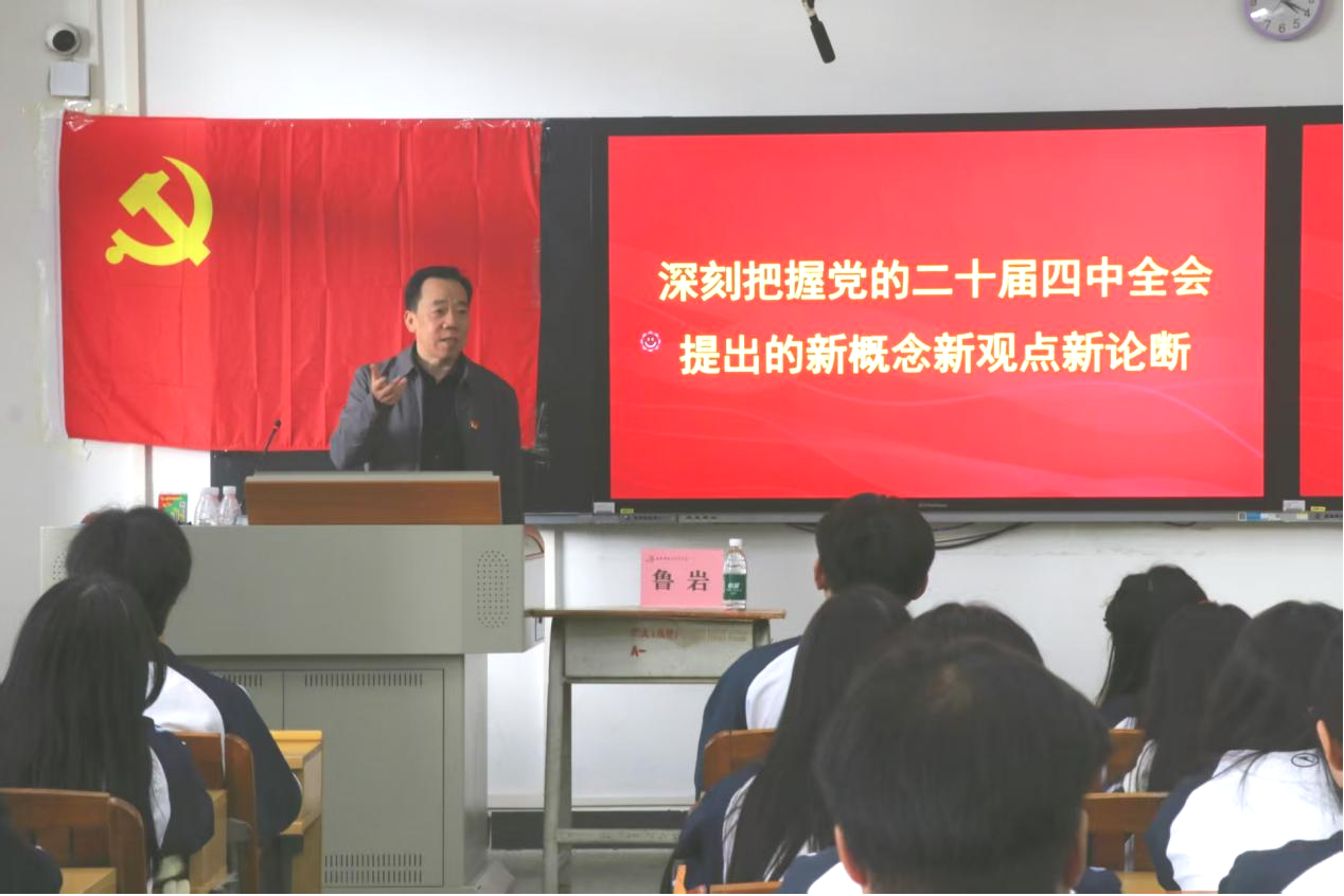 为深入贯彻党的二十届四中全会精神,引导广大师生精准把握全会核心要义,12月17日下午,我院党委书记、院长鲁岩在人文艺术楼128教室,以“深刻把握党的二十届四中全会提出的新概念新观点新论断”为主题,为50名学生党员讲授了一堂主题鲜明、内容丰富的专题党课。
