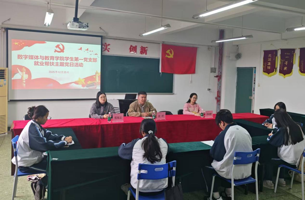 为充分发挥基层党组织战斗堡垒作用和党员先锋模范作用,扎实推进毕业生就业工作,12月25日上午,我院学生第一党支部在人文艺术楼513会议室组织开展“党旗领航,职引未来”就业帮扶主题党日活动。活动由党支部书记李艳霞主持,学院党委副书记龙轩、学生第一党支部组织委员郑旭云以及党支部全体毕业生党员参加。