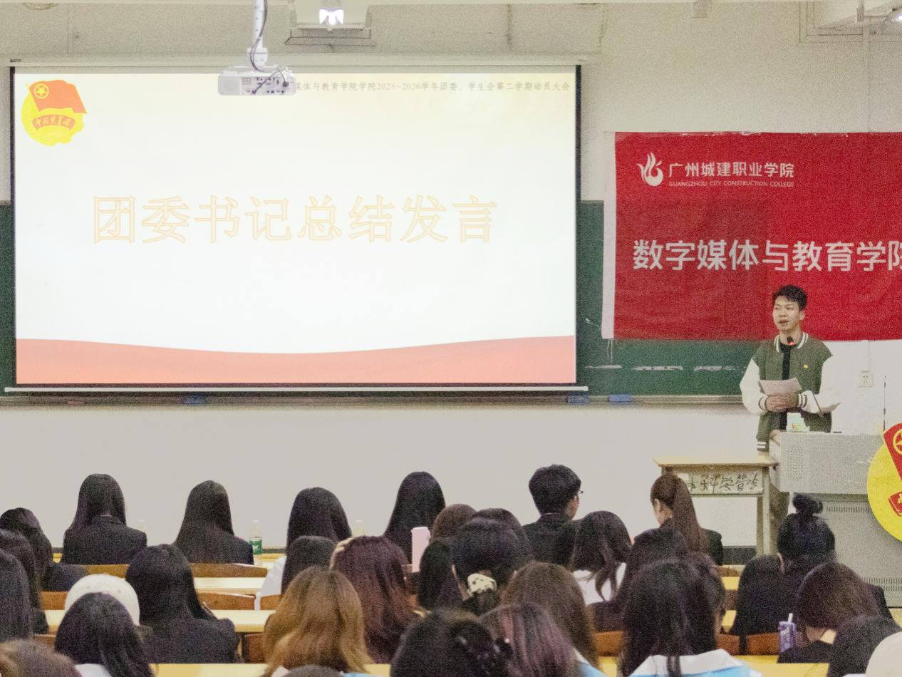 大会在嘹亮的团歌声中拉开序幕。随后,团委、学生会的分管主席就本学期的主要工作计划进行汇报,并颁发2025年度学校文体艺术季先进个人奖项。最后李垚森总结,团委、学生会的学生干部需要进一步坚定理想信念,强化责任担当,参与到学院的重大工作和竞赛上来,积极参与学风建设,维护同学权益,提升服务意识。