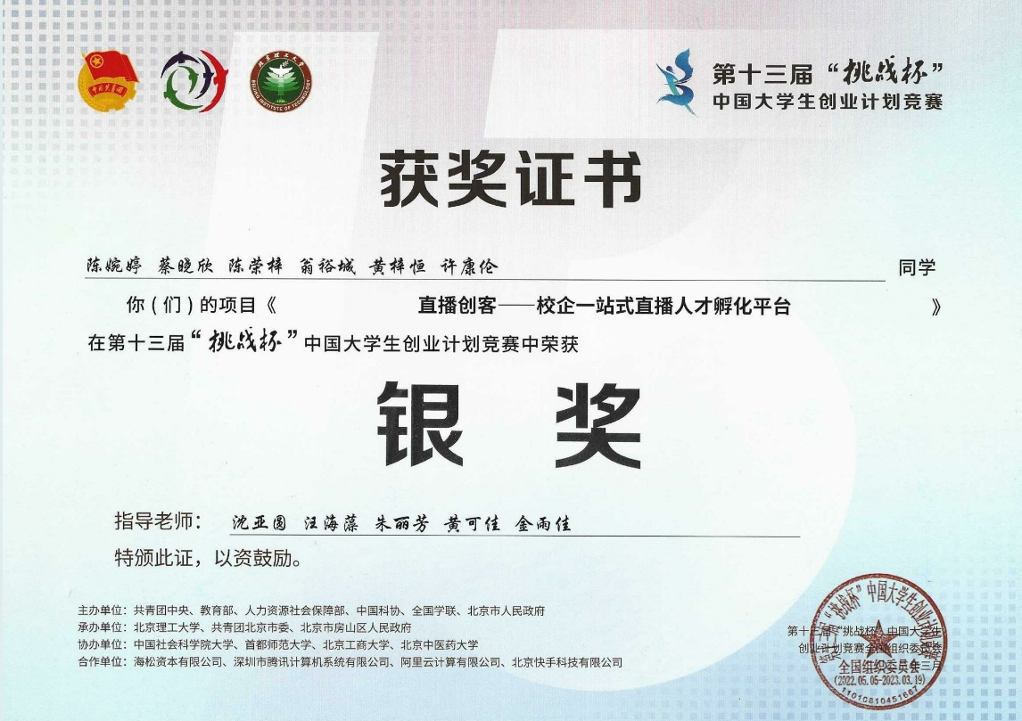 近年来,本专业学生先后获省级以上竞赛等级奖80余项。其中:“挑战杯”国赛银奖1项,省赛金奖1项、银奖1项、铜奖3项;全国大学生广告艺术大赛全国二等奖4项、三等奖2项,广东赛区一等奖6项、二等奖10项、三等奖20余项;全国首届大学生禁毒公益微艺术大赛一等奖1项;中国大学生广告艺术节“学院奖”全国银奖1项、铜奖2项;北京国际公益广告大会创意征集大赛学生组广播文案二等奖1项;中国好网民公益广告设计大赛三等奖4项;2024年“国青杯”全国高校艺术设计作品展评二等奖1项;中国国际互联网+大赛广东省分赛银奖1项;广东省职业院校学生技能竞赛一等奖3项、二等奖4项、三等奖1项等。