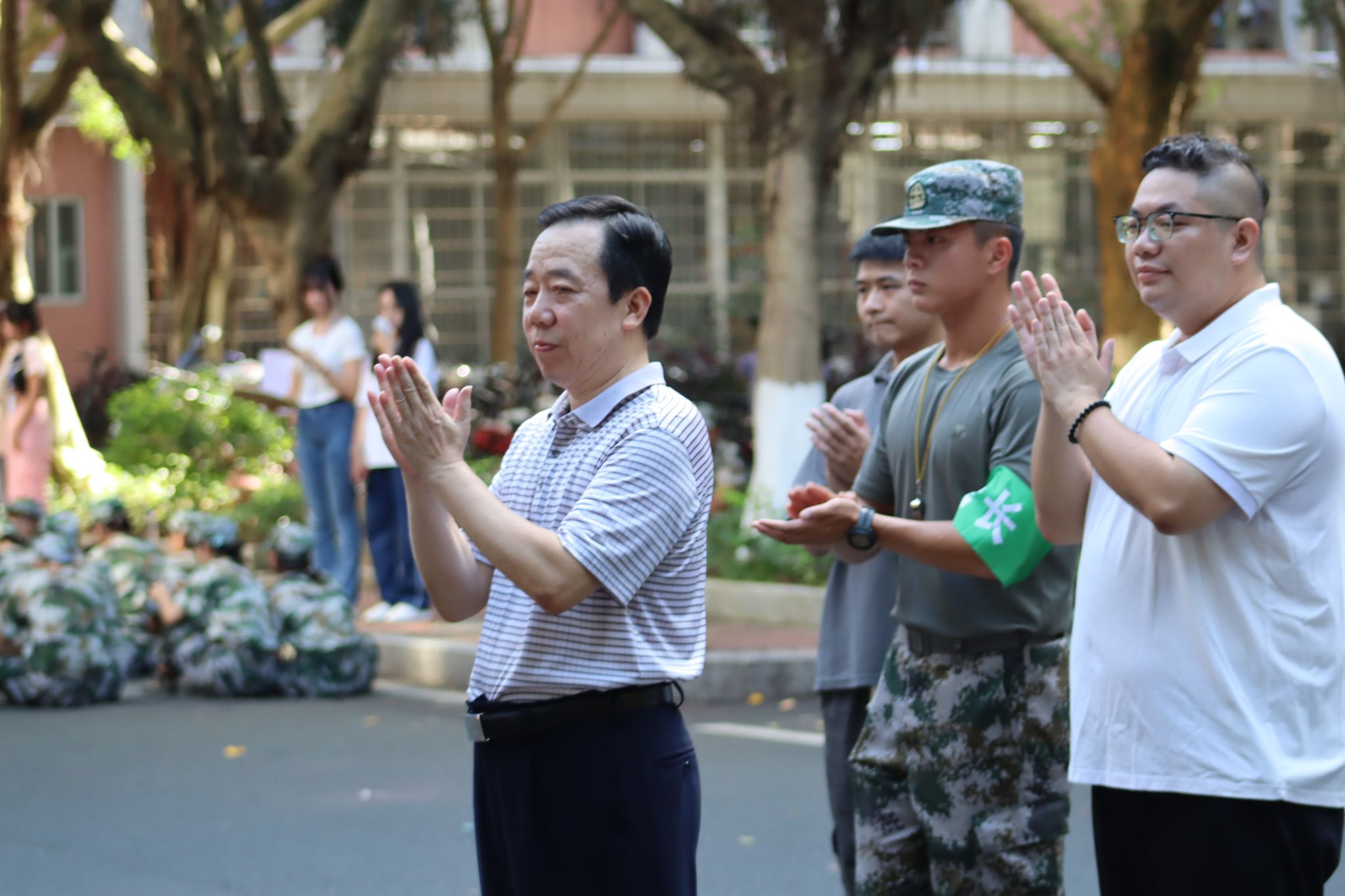 鲁岩院长一行来到我院学生军训队列方阵前视察,为军训教官亲自送上防暑饮料和润喉糖,对教官的辛苦指导和专业训练表示感谢。看到教官脸上凝结的汗珠、坚定的眼神,听到教官洪亮的嗓音,他有感而发分享自己曾经在部队的那一段难忘而又自豪的经历,勉励教官以军人的作风严格要求自己,科学制定军训目标,高质量完成本次带训工作。看到2023级新生整齐划一的操练动作,鲁岩给予高度的肯定,鼓励受训学生克服困难、勇于吃苦,把在军训中养成的良好品格、作风和行为习惯带到大学的学习生活中去。金秋军训助成长,人文学院全体新生必将以饱满的热情、昂扬的斗志、严谨的纪律、不怕受苦的精神完成军训任务,为这十四天的军训生活画上圆满的句号。