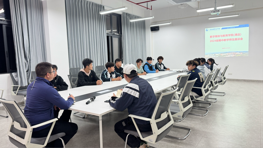 为深入了解学生的学习生活状况,收集学生对教学管理、教学质量等方面的意见,搭建师生高效沟通的桥梁,11月13日,我院清远校区期中教学检查师生座谈会在融洽的氛围中召开。学院副院长郝世煜、体育专业教研室主任杨镞江、专业教师贺紫怡与2024、2025级各专业学生代表齐聚一堂,畅所欲言,共话成长。