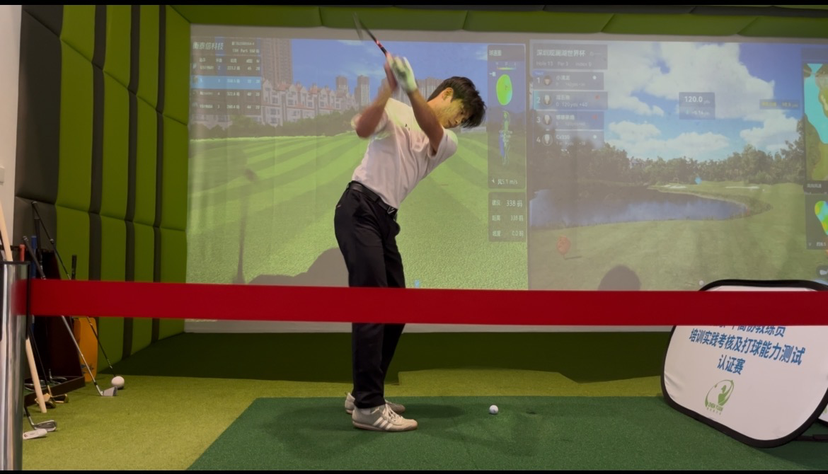在模拟体验实践教学过程中,师生充分利用企业先进的高尔夫球模拟训练系统,将科技体验与课程教学相结合,通过模拟18洞的实战,逐洞分析球场策略,帮助学生理解如何根据球道布局、果岭坡度调整战术,真正实现“技术+思维”的双重训练。“室内模拟并非简单的击球练习,而是基于数据分析的个性化提升过程。它不仅解决了场地与时间的限制,更通过数据化分析让教学更科学。未来,我们计划将AI技术融入课程,为学员定制长期成长路径”,该专业教师王楠指出。