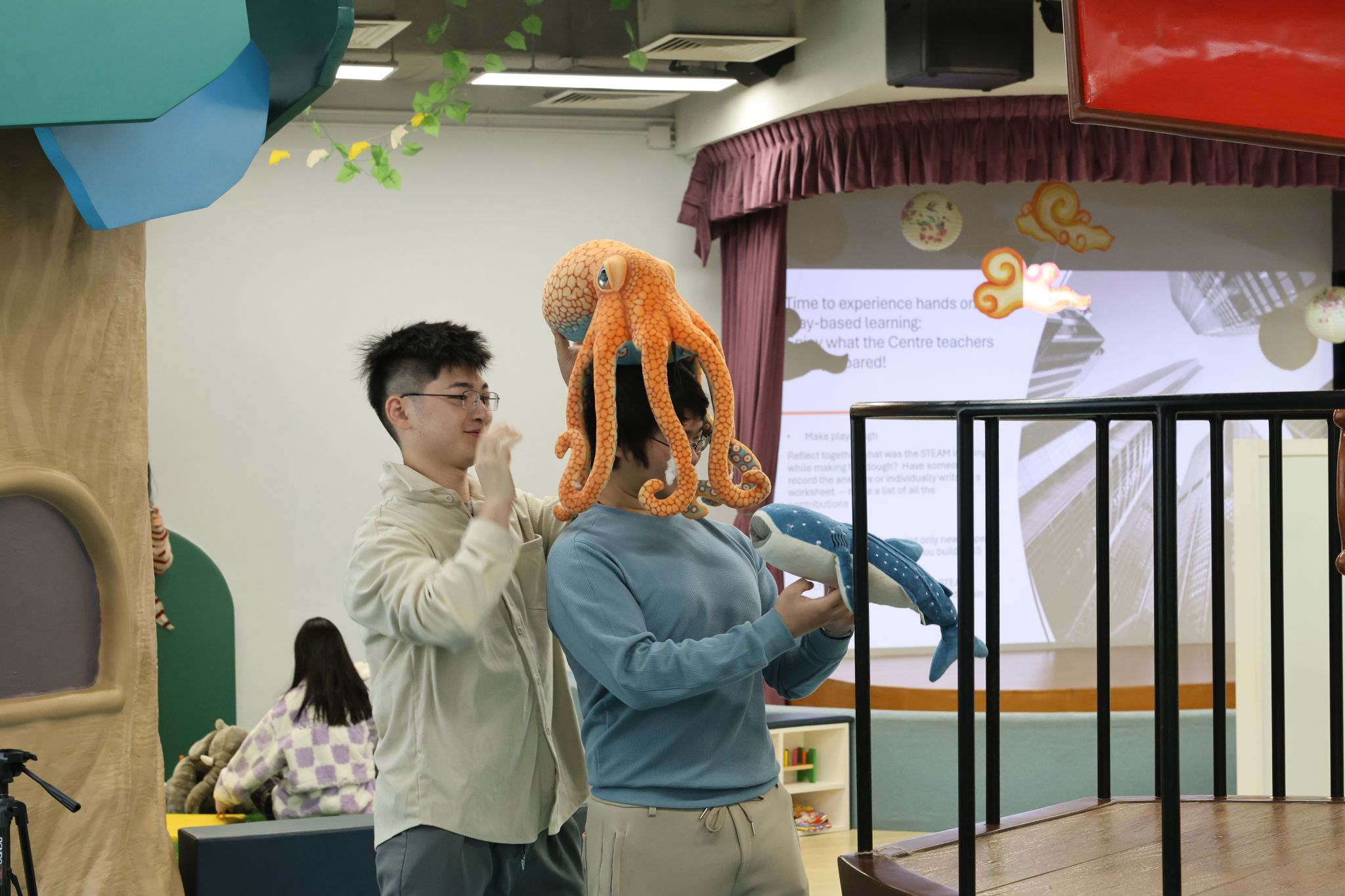 在沉浸式的实践体验环节,师生们走进了耀中幼教学院知名的PPDS中心,零距离观摩并体验了香港首个针对幼小阶段的STEAM教育实战应用,从有趣的科学实验到充满创造力的工程挑战,同学们亲眼见证了如何将抽象的STEAM概念转化为适合幼儿探索的趣味活动,深刻感受到了创新教育在激发幼儿潜能方面的巨大力量。同时,耀中幼教学院的导师们通过大量鲜活的本地实践案例,生动阐释了游戏作为核心教学手段的理论依据与操作方法,并就如何在教学环境中有效融入游戏化学习等议题与研学团师生进行了深入交流。他们还系统解读了独具特色的“耀中教育十二信条”,让研学团成员深入了解了这一理念如何贯穿于从幼儿教育到中小学课程全阶段教学实践中,深度理解耀中幼教的核心教育理念和价值追求,对“全人教育”的内涵有了更深层次的感悟。