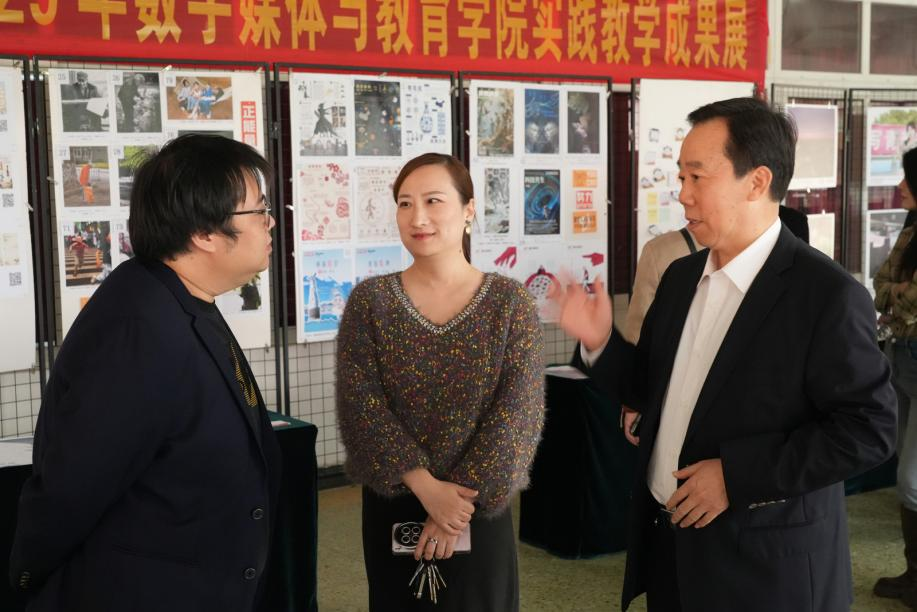 为全面展示学院实践教学改革成效,搭建师生成果交流、校企合作对接的优质平台,12月4日-12日,2025年数字媒体与教育学院实践教学成果展在人文艺术楼四楼报告厅连廊空地正式开展。展览期间,学校领导、职能部门负责人以及参加我院202年职教集团年会的企业嘉宾、学校师生都莅临成果展现场进行参观,并给予了高度评价。