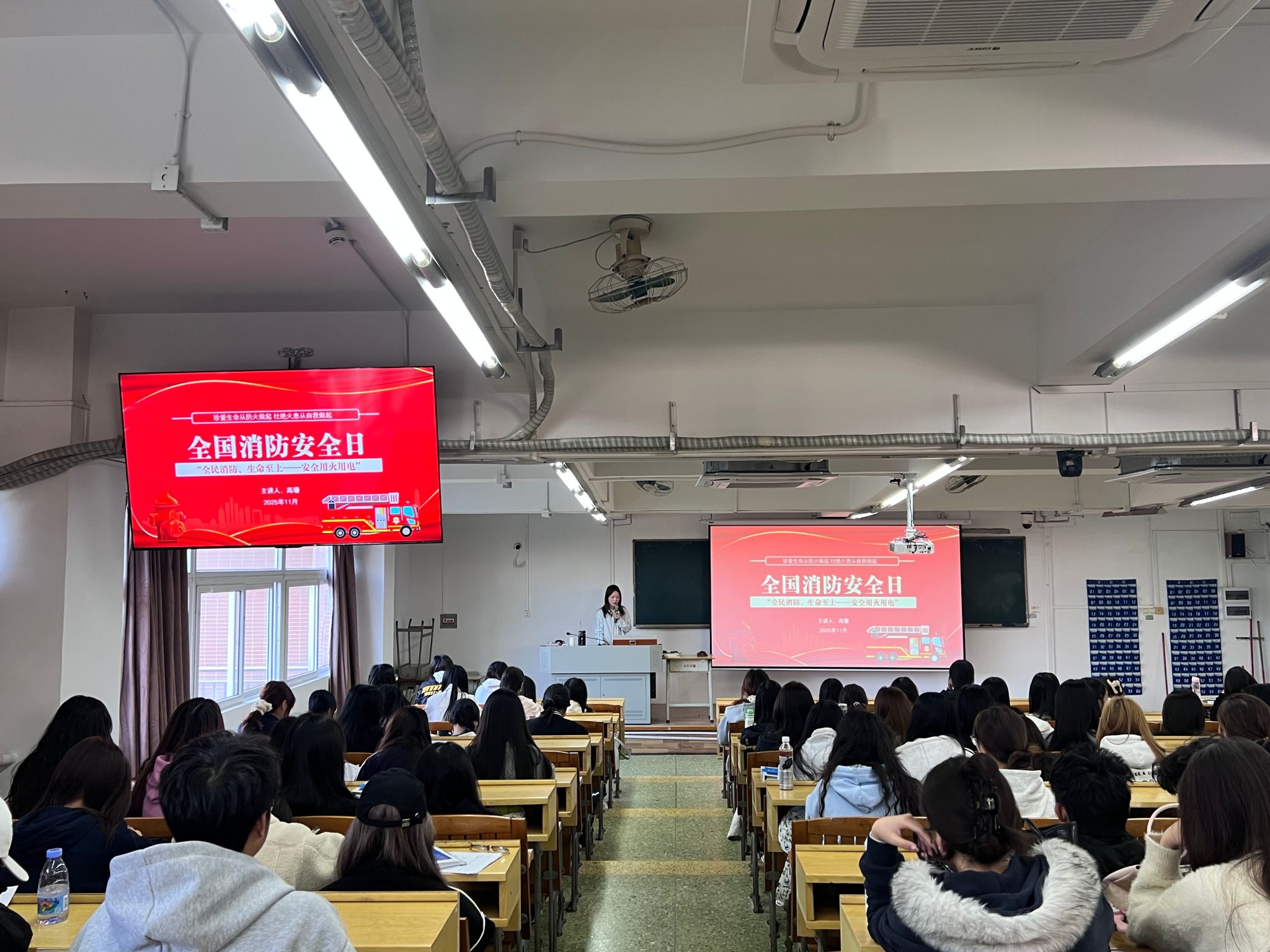 为迎接全国消防宣传日,全面提升学生的消防安全意识与理论知识水平,11月6日下午,我院组织开展了一场消防安全知识专题培训,邀请各班辅导员主讲,全体学生参与了培训活动。