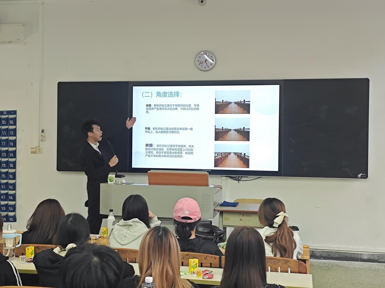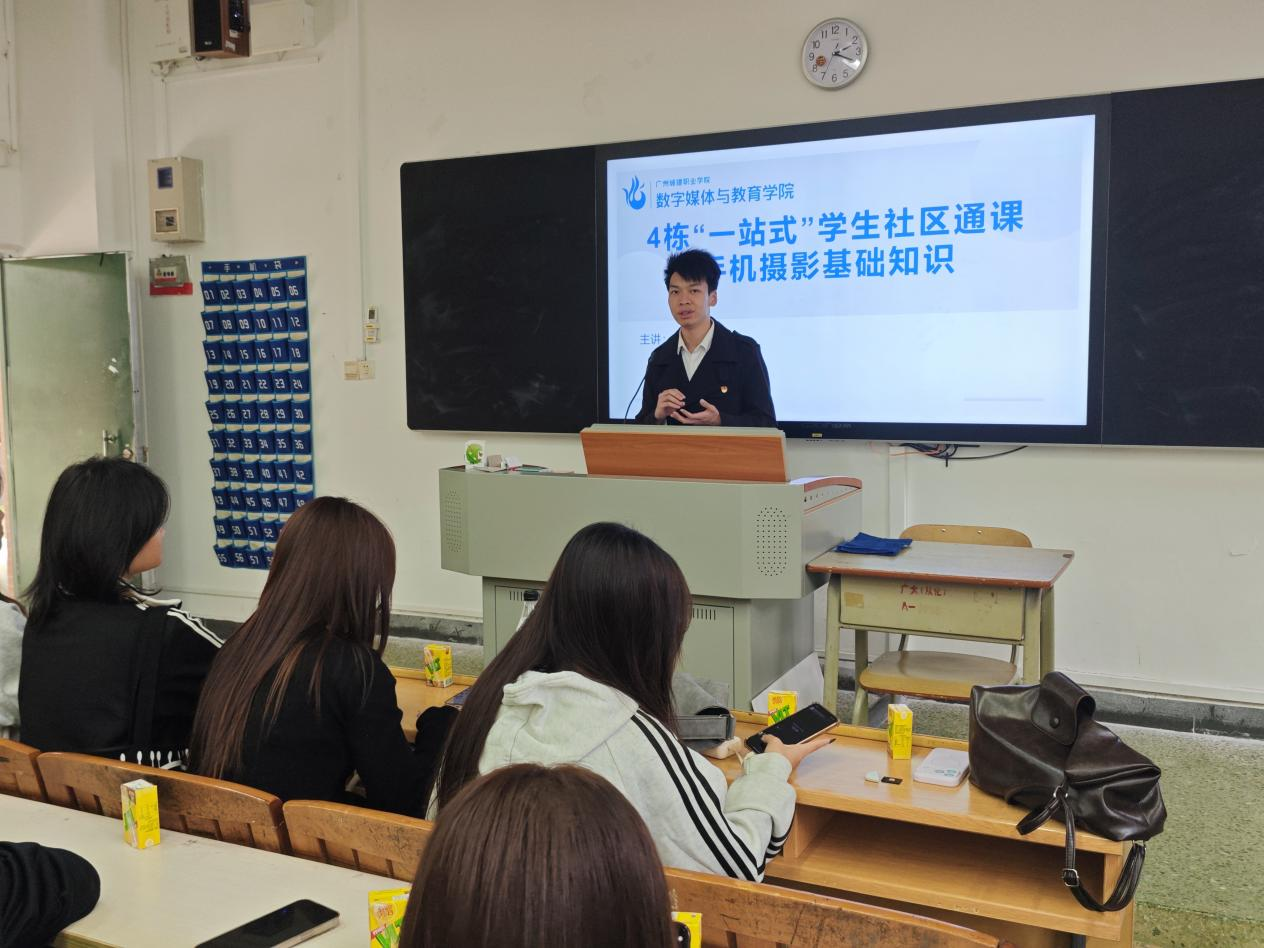 为了丰富同学们的校园文化生活,提升美学素养和发现美、记录美的能力,10月23日下午,由广州城建职业学院学生处主办、4栋功能型党支部承办的“一站式”学生社区手机摄影通识体验课在广州校区1102教室成功举办。本次活动由数字媒体与教育学院团委书记李垚森进行授课,共计28名同学参与了活动。