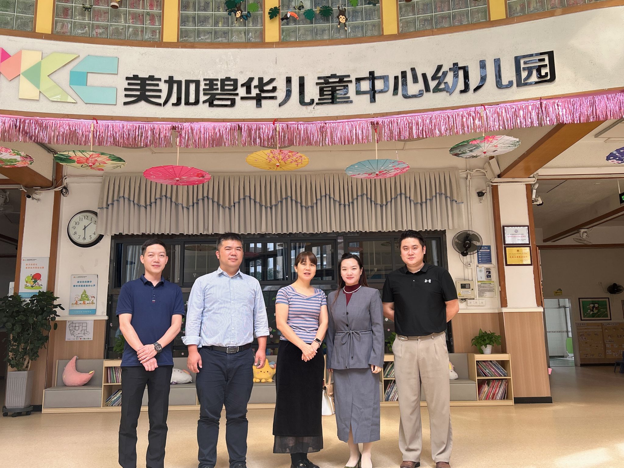 在集团负责人陪同下,我院人员参观了该教育集团下属美加碧华儿童中心幼儿园,详细了解集团的发展历程、企业文化、业务板块及人才需求。